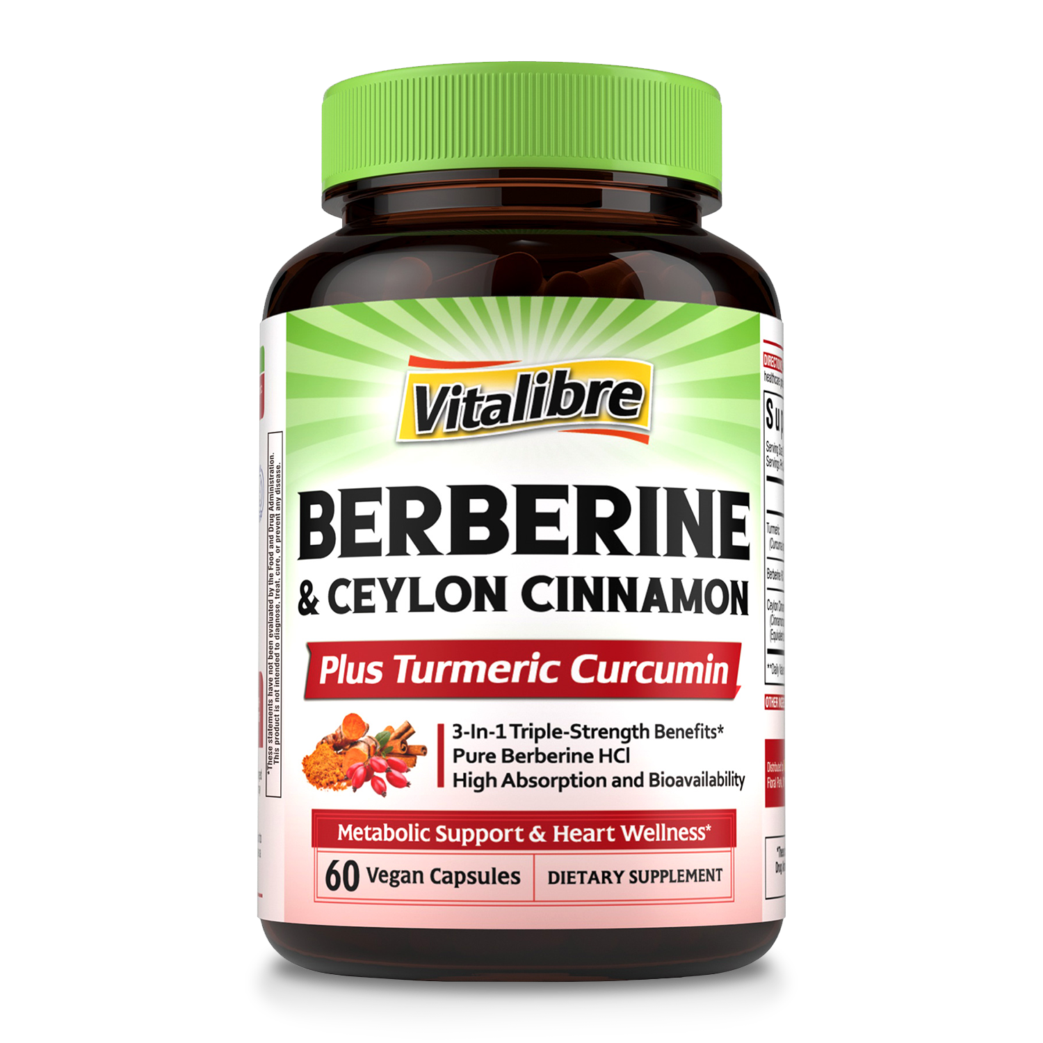 Vitalibre Berberine Complex features berberine combined with Ceylon cinnamon & turmeric to support long-term immunity and heart health.*