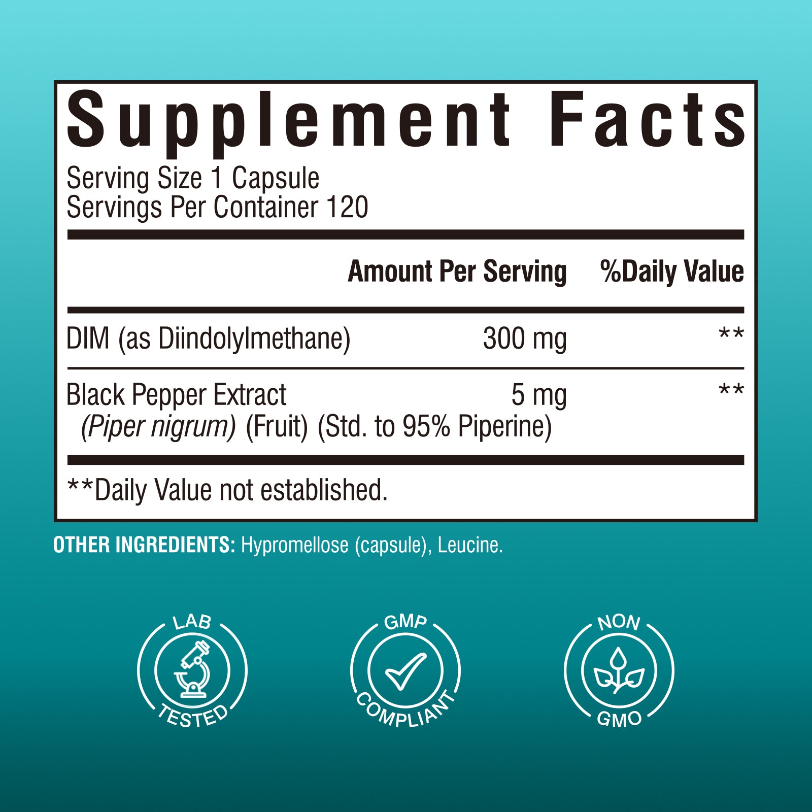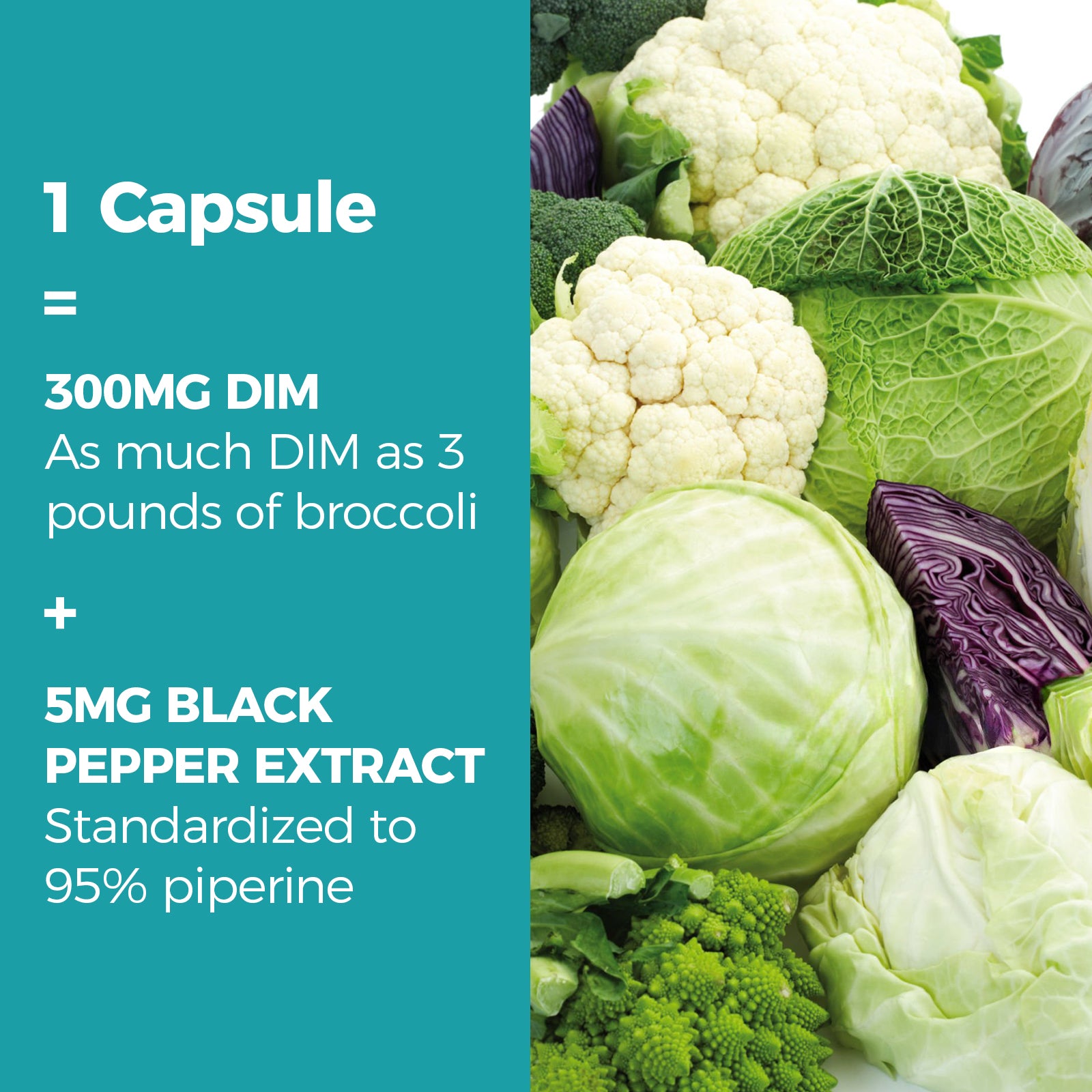 Vitalibre DIM provides a high potency 300 mg of DIM per capsule, as much DIM as 3 pounds of broccoli, to support estrogen metabolism.*