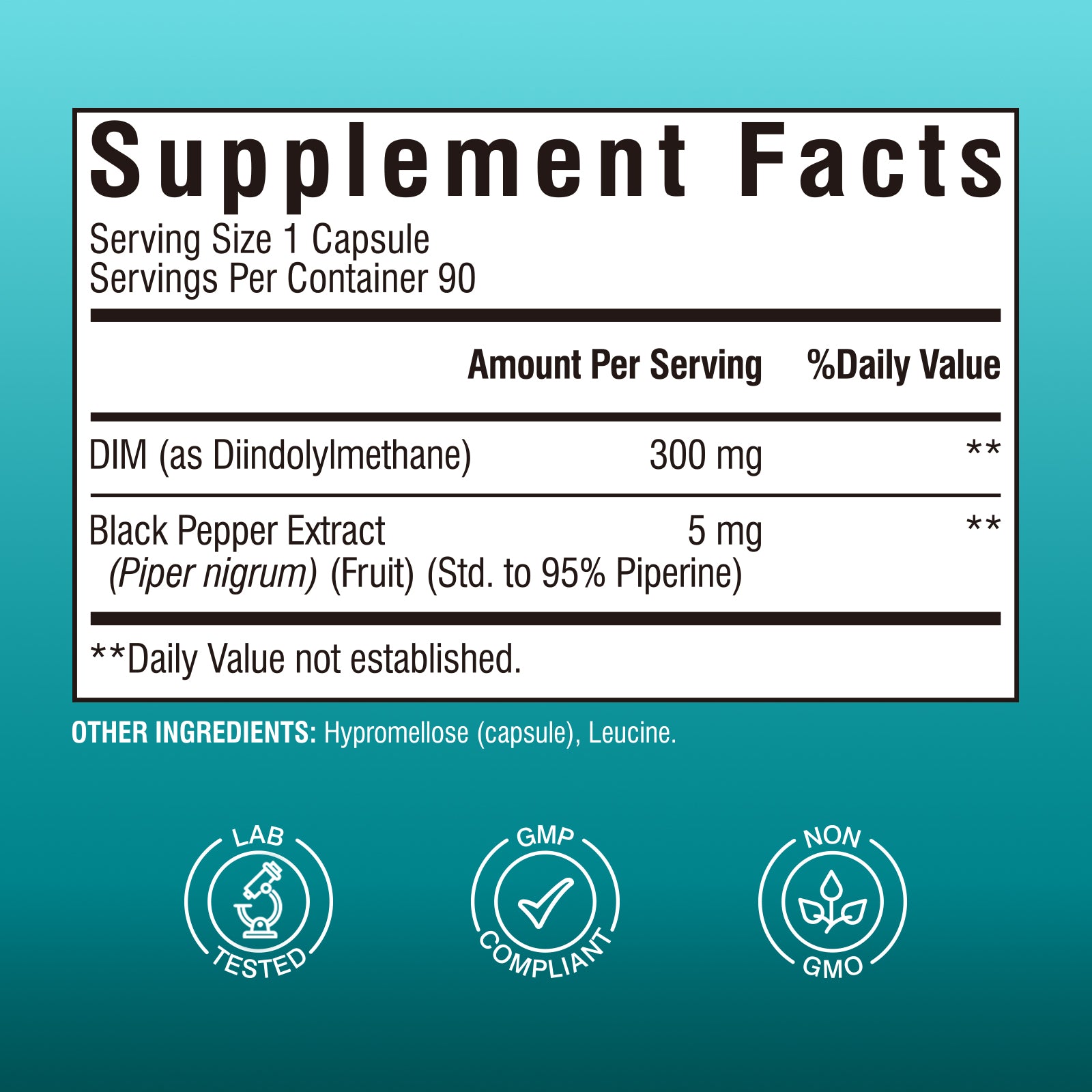 A high potency DIM supplement providing 300mg DIM per capsule to support hormone balance & estrogen metabolism, plus black pepper extract for enhanced absorption.*