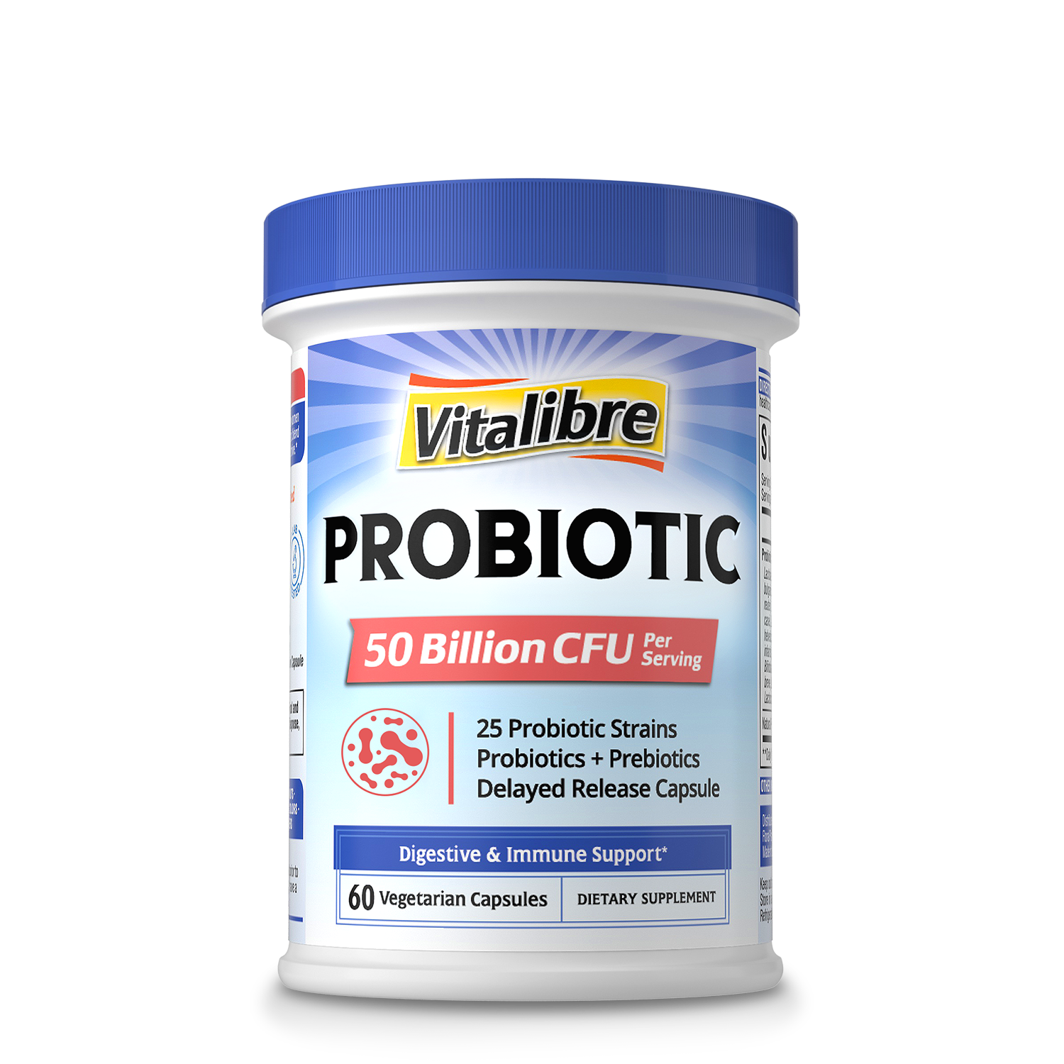Vitalibre Probiotic 50 Billion is designed to promote daily digestive and immune health for both men and women. Its expertly crafted prebiotic blend creates the ideal environment for probiotics to flourish and deliver maximum benefits.